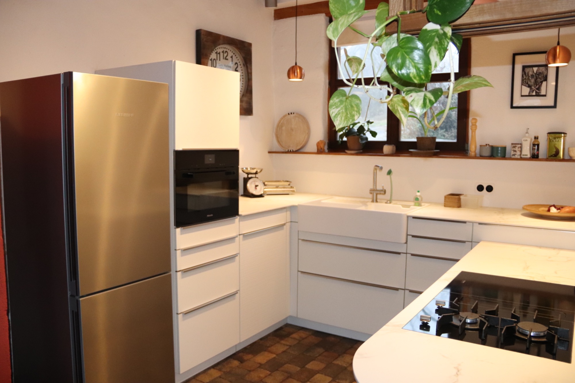 Die Küche im Ziegenstall ist ein wahres Paradies für Kochliebhaber und lädt Sie ein, Ihre kulinarischen Träume zu verwirklichen! Mit einer fantastischen Auswahl an Gewürzen und vielen Kochutensilien ausgestattet, sind Sie bereit, Ihre Geschmacksknospen zu verwöhnen und neue Rezepte zu entdecken. Die hochmodernen Geräte von Miele, die in dieser inspirierenden Küche stehen, warten nur darauf, Ihnen zu helfen, das Kochen zu einem unvergesslichen Erlebnis zu machen. Egal, ob Sie ein herzhaftes Frühstück oder ein festliches Dinner zaubern möchten – hier wird jede Minute zum Vergnügen und jeder Bissen zu einem Fest der Sinne. Lassen Sie Ihrer Kreativität freien Lauf und genießen Sie die Freude am Kochen!